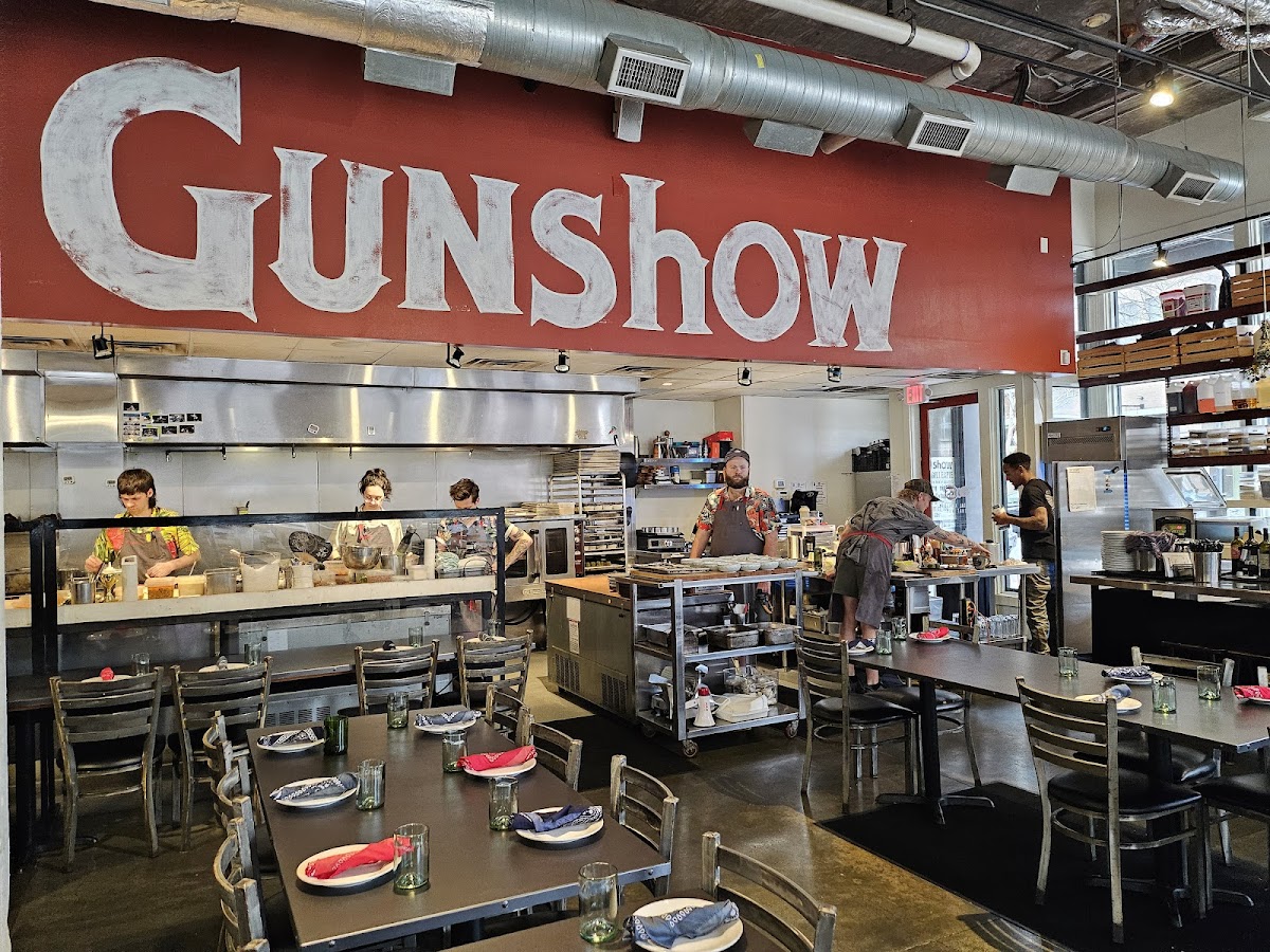 The gun show is a dining Mecca in Atlanta. The outside is very unassuming and the interior very minimalist. Your food comes kind of dim sum style: they bring prepared small dishes to your table to accept or refuse. Each night a handful of chefs prepare signature dishes to be shared at your table. The creativity of each dish served felt like being at a magic show. Each food item was more amazing than the previous one. We learned the history behind the name of the restaurant - the owner's father used to take him to gun shows when he was growing up. It was from this fond memory the name of the restaurant was born. The food was amazing but the price will leave you in sticker shock. If you're in the ATL check this place out.